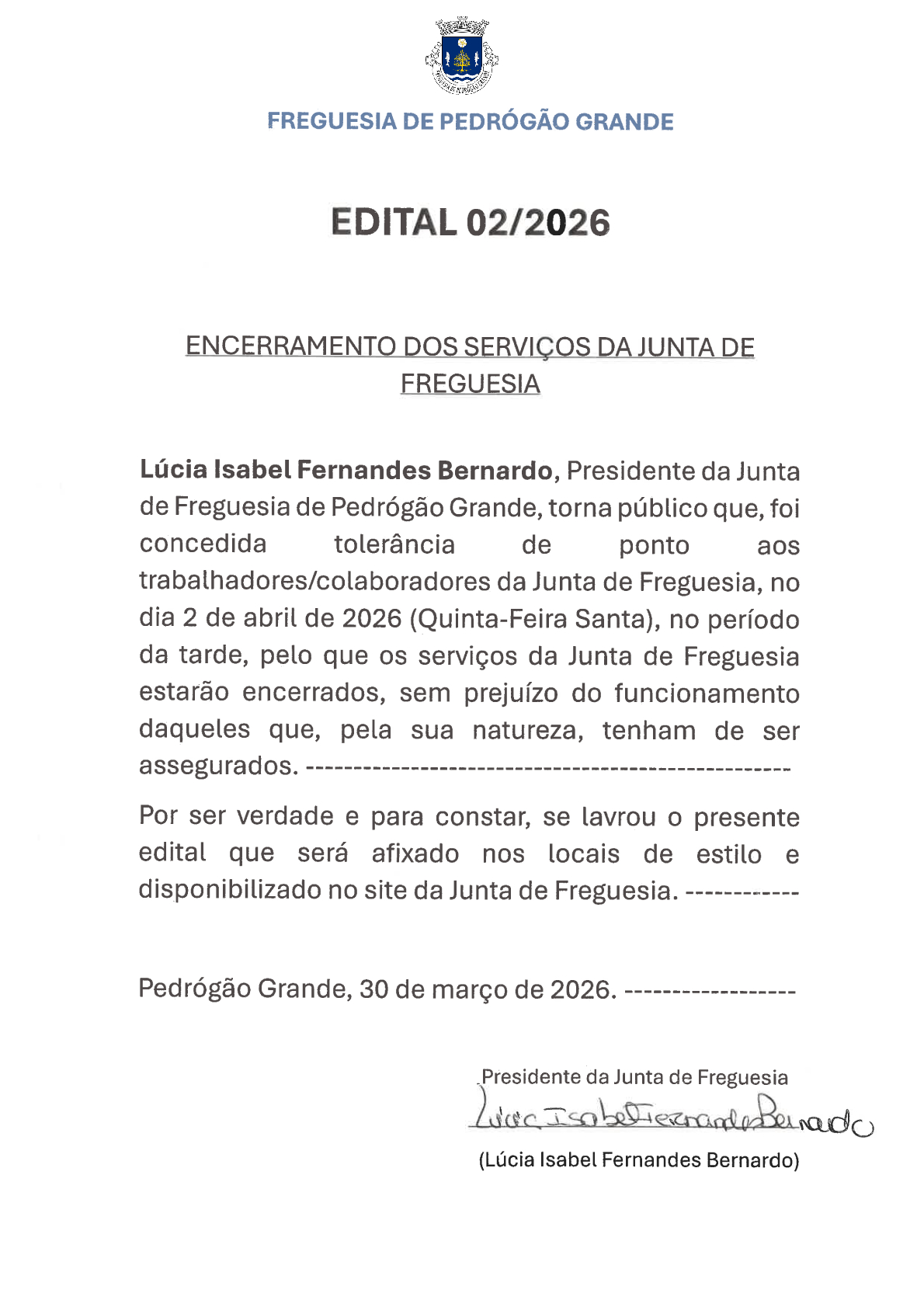 Edital- Assembleia de Freguesia de Pedrógão Grande