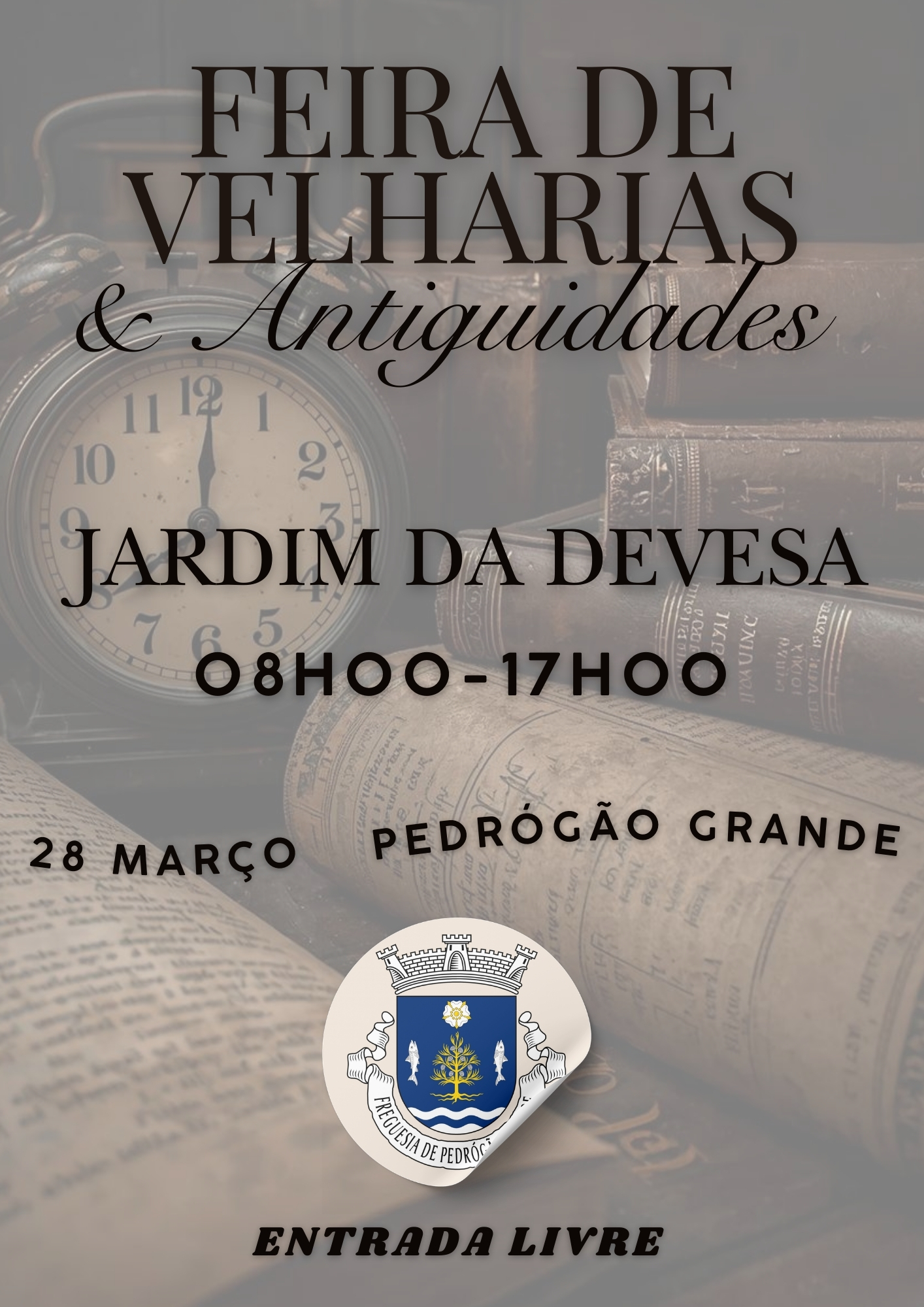 No próximo dia 28 de março de 2026, entre as 08h00 e as 17h00, venha visitar-nos no Jardim da Devesa, em Pedrógão Grande, e descubra peças únicas, antiguidades, colecionáveis e muitos objetos cheios de história. 🪙🕰️📚
