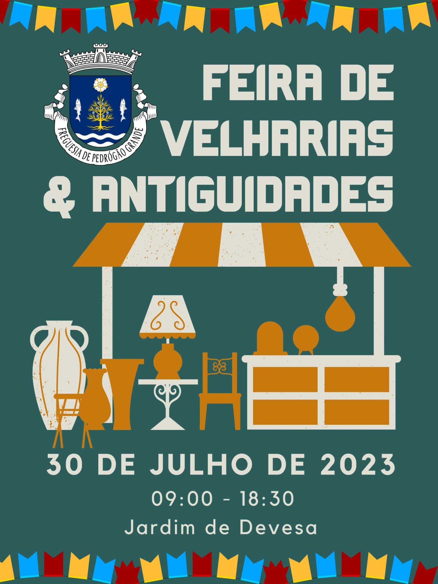 Esta Junta de Freguesia promove mais uma Feira de Velharias e Antiguidades, no local do costume, no nosso tão bonito Jardim da Devesa.Contamos com todos !