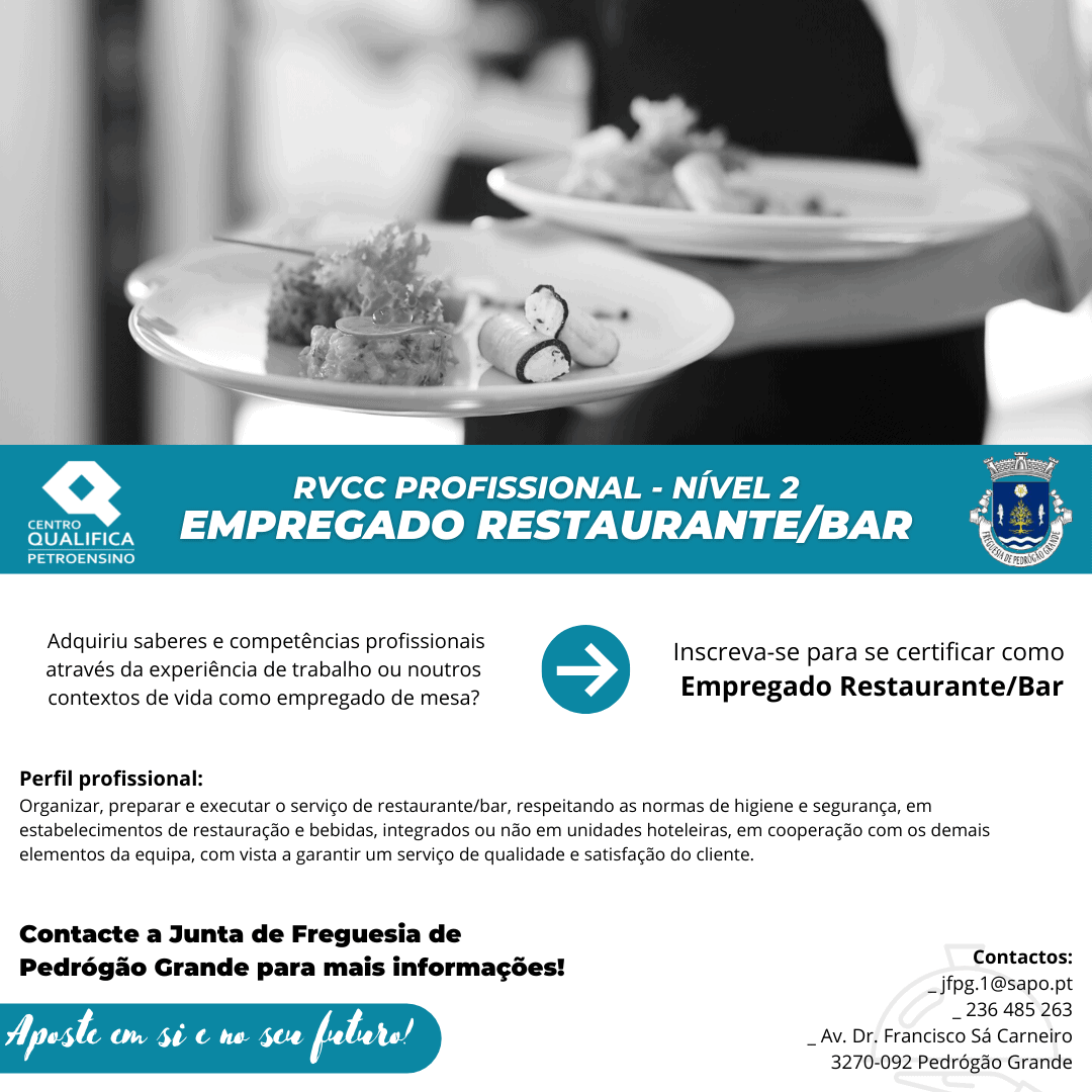 Inscreva-se para se certificar como Empregado de Restaurante/Bar